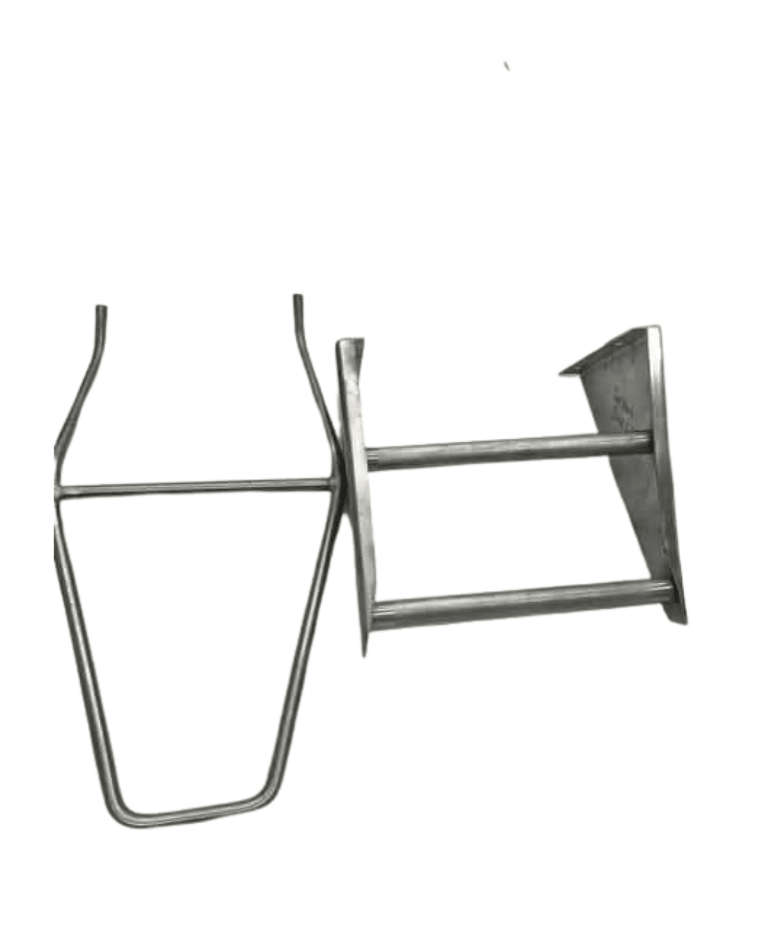 HEAD LOOP FOR THE POST MOTEM INSPECTION OF BEEF HEADS. MADE WITH 304 STAINLESS SANITARY AND EASY TO CLEAN. LOOP IS 24 INCHES LONG AND 12 INCHES WIDE. FORMED FROM 5/8 INCH 304 STAINLESS ROD. WALL MOUNTING BRACKET IS MADE FROM 1/8 304 STAINLESS PLATE WITH SOLID 1″ 304 STAINLESS CROSS BARS.